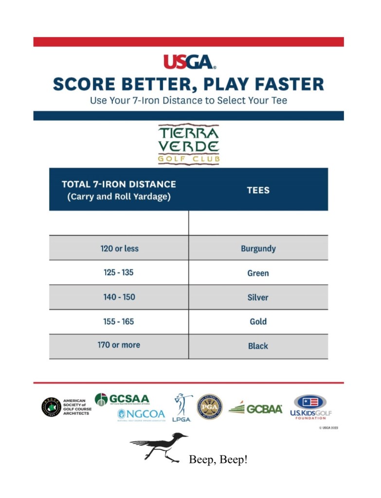 - Visage GPS Pace of Play is communicated on the 1st, 4th, 7th, 10th, 13th, & 16th Tee.