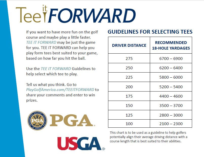 1. Start Smart – Confirmation of your tee time in advance and make it a point to arrive early and ready to play. “Tee it Forward” unless you are consistently able to reach greens in regulation from the back tees. Play from a set of tees that is confortable for you. It is acceptable for players in the same group to play from different tees, and the USGA Handicap System provides a formula for adjusting handicaps from different tees if needed.